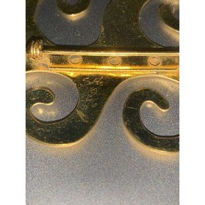Vintage Signed 1996 "S.H." Swirl Brooch Goldtone Statement 2.5" l x 2"h