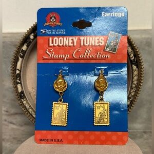 Vintage Signed 1997 USPS Warner Brothers Looney Tunes Stamp Earrings