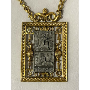 Vintage Signed ART Arthur Egyptian Revival 2 Toned Statement Necklace