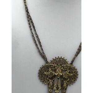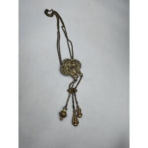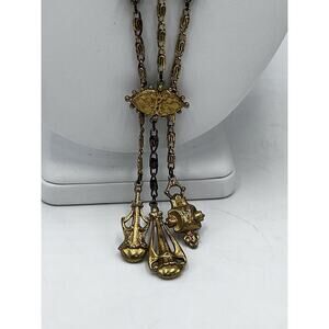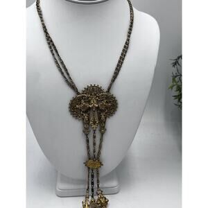 Vintage Signed ART Arthur Pepper VICTORIAN Style Necklace Gold 3 Tier Pendants
