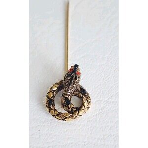 Vintage Signed ART Gold Tone Rhinestone Snake Serpent Brooch Hat Pin