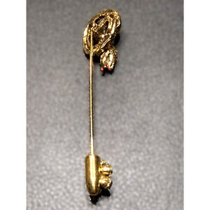 Vintage Signed ART Gold Tone Rhinestone Snake Serpent Brooch Hat Pin Cabochon