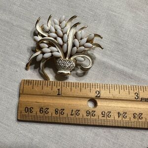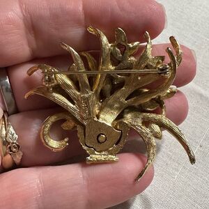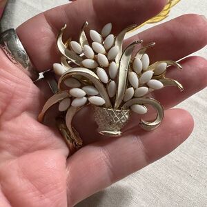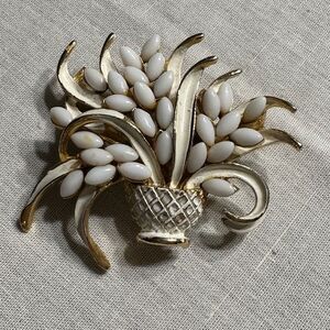 Vintage Signed ART Gold tone and Enamel Flower Basket Pin Brooch