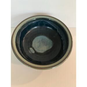Vintage Signed Abreu's Studio Glazed Pottery Decorative Serving Bowl Blue JL