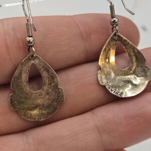 Vintage Signed Alpaca Silver Mexico Inlaid Drop Earrings Coral Chip Southwestern