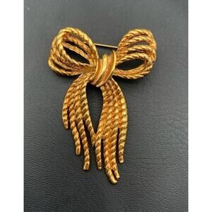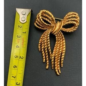 Vintage Signed Angel Ribbon Bow Pin Brooch Gold Tone Girly Feminine Rope Bow