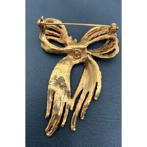 The Vintage Signed Angel Ribbon Bow Pin Brooch in Gold Tone is a charming and feminine piece of jewelry perfect for women who appreciate unique and timeless accessories. The bow shape adds a touch of elegance, while the gold color and girly design make it a versatile piece that can be worn for various occasions. The signed Angel brand adds a touch of authenticity and vintage appeal to this beautiful brooch, making it a standout accessory for any fashion-forward outfit.