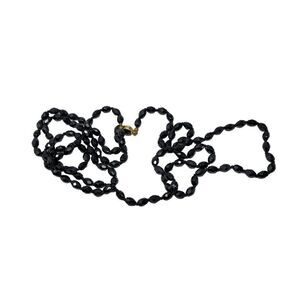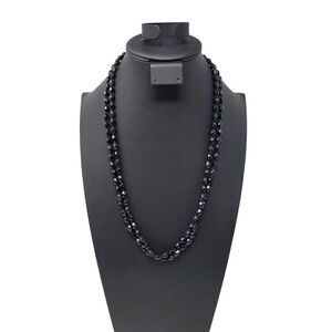 This vintage Austrian signed necklace features black oval bicone beads in a long versatile design, making it a perfect addition to any Roaring 20s or Great Gatsby cosplay. A collectible piece that makes an excellent gift.
