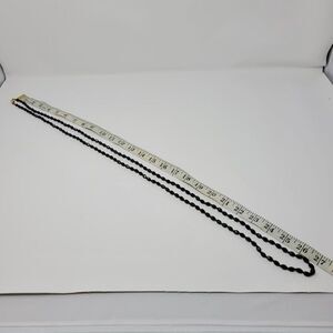 Vintage Signed Austrian Black Glass Beaded Flapper Necklace Oblong Bicone Long