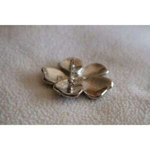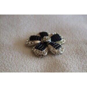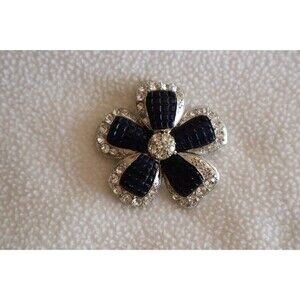 Vintage Signed Avon Blue Waffle Lucite Rhinestone Flower Silver Tone Brooch 1.8"