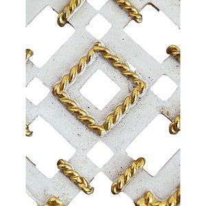 Vintage Signed Avon Brooch Geometric Design White Enamel Goldtone Metal Tassels