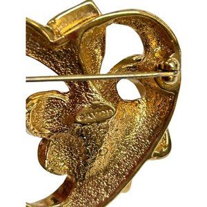 Vintage Signed Avon Brooch Pin Goldtone Heart with Bow Blue Stone 1.5"