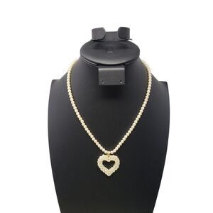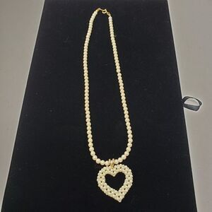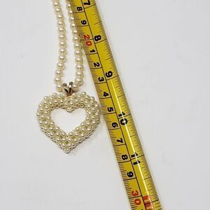 Vintage Signed Avon Faux Pearl Strand 3D Puffy Heart Pendant Princess Necklace