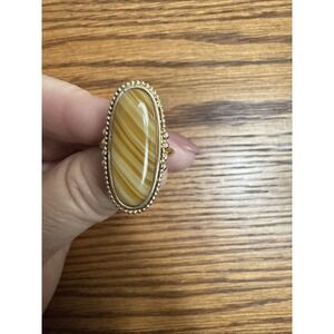 Vintage Signed Avon GoldTone Large Caramel Tone Cabochon Adjustable Size 6 Ring