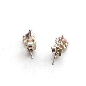 Vintage Signed Avon Silver Tone Pink Prong Set Romantic Heart Stud Earrings