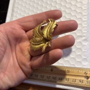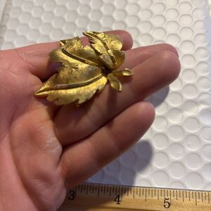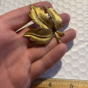 Vintage Signed BSK Brooch Pin Triple Leaf Gold Tone Textured 2-1/4" Statement