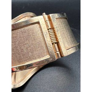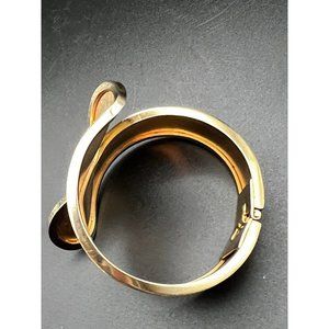 Vintage Signed Bartek Gold tone Textured Hinged Bracelet Cuff Bangle