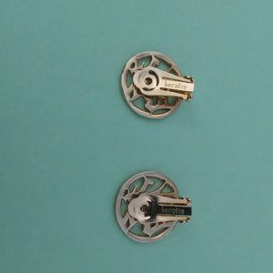Vintage Signed Bergere Chinese Symbols in Gold tone Circle Clip On Earrings. Ruler and quarter in pictures to help with size visualization  ~ .75 inches in diameter. Questions are always welcome. These are in much better condition than my other vintage Bergere earrings perhaps because I only wore them a couple of times.