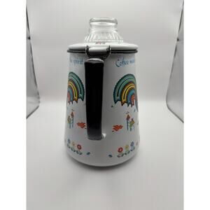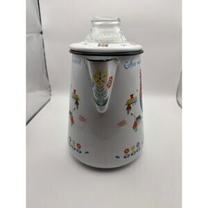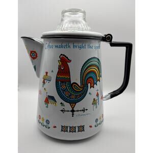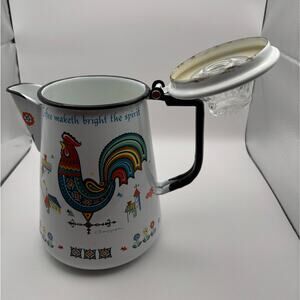 Vintage Signed Berggren Enamel Swedish Coffee Pot Rooster Folk Art Design