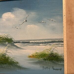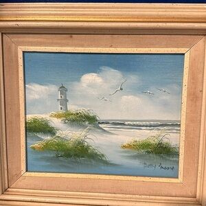 Vintage Signed Betty Moore Framed Oil on Canvas Painting Lighthouse Seascape