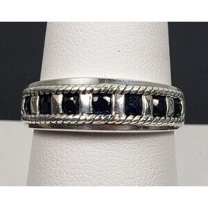 Vintage Signed CNA 7 Deep Blue Sapphire Sterling Silver 925 Ring Size 9