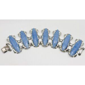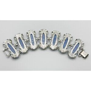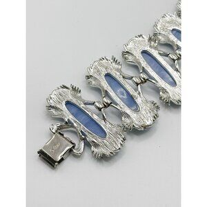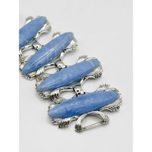 Vintage Signed CORO Blue Lucite Link Bracelet Silver Tone 2" Wide