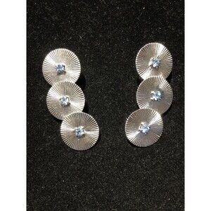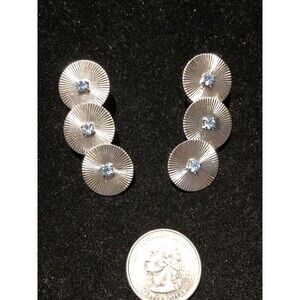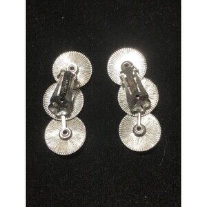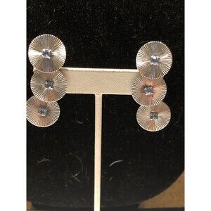 Vintage Signed CORO Rare Blue Rhinestones Silver Tone Metal Clip Earrings
