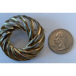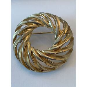 Vintage Signed Capri Goldtone Swirl Round Brooch Pin 1 5/8"d