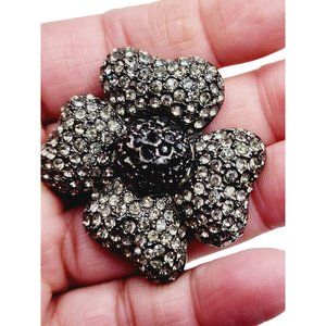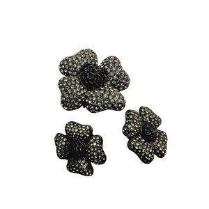 Vintage Signed Carlisle Pave Rhinestone Flower Brooch & Earrings Set (A1202)