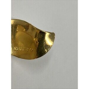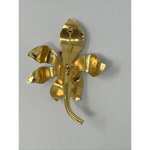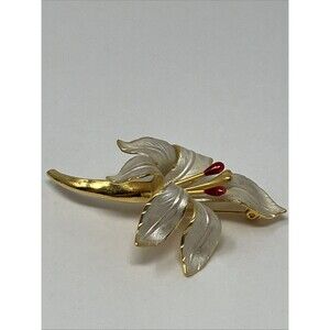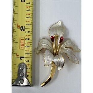Vintage Signed Cerrito White & Red Enamel Lily Brooch w/ Gold Plated Edges