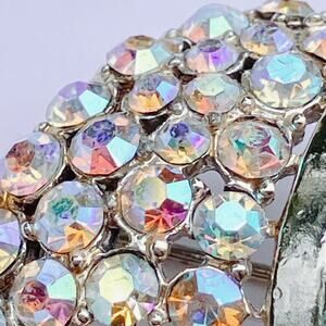 Materials: Gold tone metal; aurora borealis rhinestones; baguette-cut rhinestones