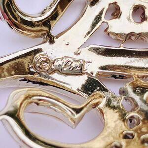 Features: Signed Coro; sculptural swirl design; pavé aurora borealis rhinestones; baguette accents; dimensional layered build