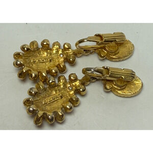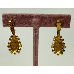 Vintage Signed Coro Gold Tone Clip Dangle Earrings Faux Jade Enamel Seed Pearls