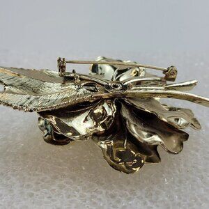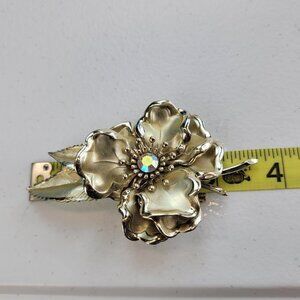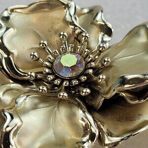 Vintage Signed Coro Matte Gold-Tone AB Rhinestone Flower Brooch 3.5 in