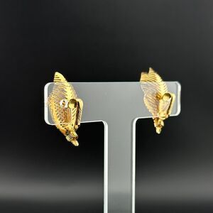 Vintage Signed Corocraft Gold-tone Openwork Leaf Clip on Earrings 1.5"