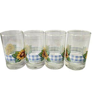 Vintage Signed Crisa Sunflower Juice Glasses 6 oz Capacity Set of 4 Yellow Blue