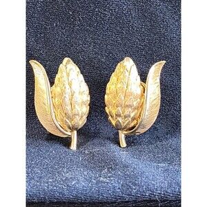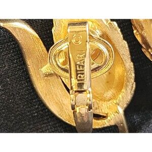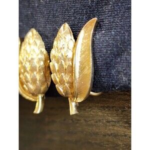 Vintage Signed Crown Trifari Brushed Gold tone Wheat Clip On Earrings Pinecone