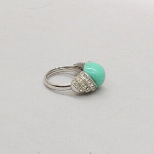 Vintage Signed Crown Trifari Faux-Turquoise & Clear Rhinestone Ring Size 5.5-7.5