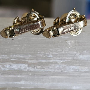 Vintage Signed Crown Trifari Pearl and Crystal Earrings Clip on