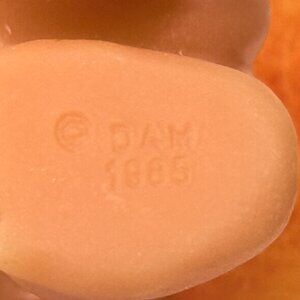 An authentic signed DAM troll doll, 1985. Vibrant orange hair and rosy cheeks. Hard, slightly shiny, plastic body. All over very good vintage condition. Signed on one foot (see photo). No clohtes. Approximately 4" in length from top of head (not hair) to feet.