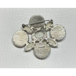 Vintage Signed DAUPLAISE Brooch Pin Silver Tone Faux Pearl Statement.