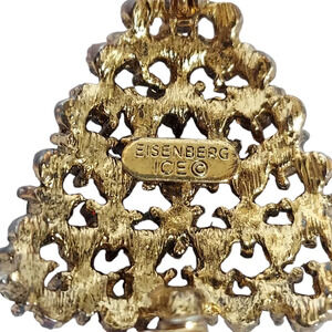 Vintage Signed Eisenberg Ice Goldtone Colorful Rhinestone Christmas Tree Brooch