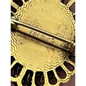 Vintage Signed FREIRICH Green Glass Stone Gold Tone Setting Brooch Soldier 1960s
