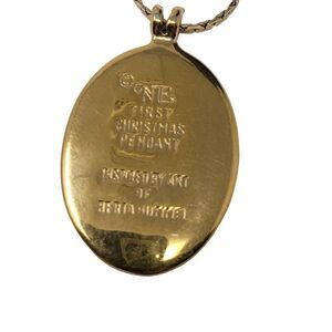 Vintage Signed First Christmas Angel Pendant Berta Hummel Gold Tone Necklace