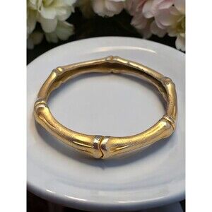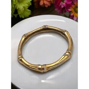 Vintage Signed Givenchy Bracelet Gold Tone Bamboo Design Bangle 8M