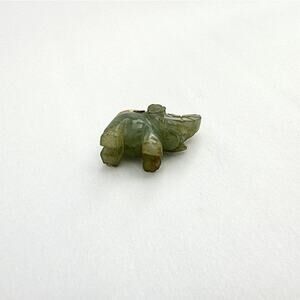 A beautiful and classic vintage good luck charm, crafted in Hong Kong. This piece features a skillfully hand-carved elephant, rendered in a lovely mottled green Jade (likely nephrite). In many cultures, the elephant is a revered symbol of strength, wisdom, and good fortune. The carving is fitted with a solid 14K gold bail which is fully hallmarked with the maker's initial 'A', 'H.K.' for Hong Kong, and '14K'. A timeless and precious piece of signed, wearable art.