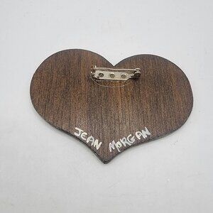 Vintage Signed Heart Shape Hand Painted Wooden Floral Pin Brooch Daisy Gladiola