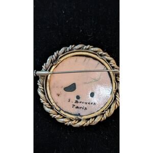 Vintage Signed J. Brevers Paris Large Fused Limoge Enamel on Porcelain Brooch