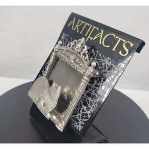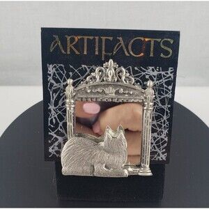 Vintage Signed JJ Cat In Mirror Pewter Tone Pin Brooch