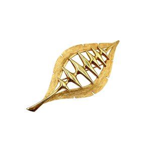 Vintage Signed JJ Gold Tone Leaf Brooch Modernist Design Mid Century Modern